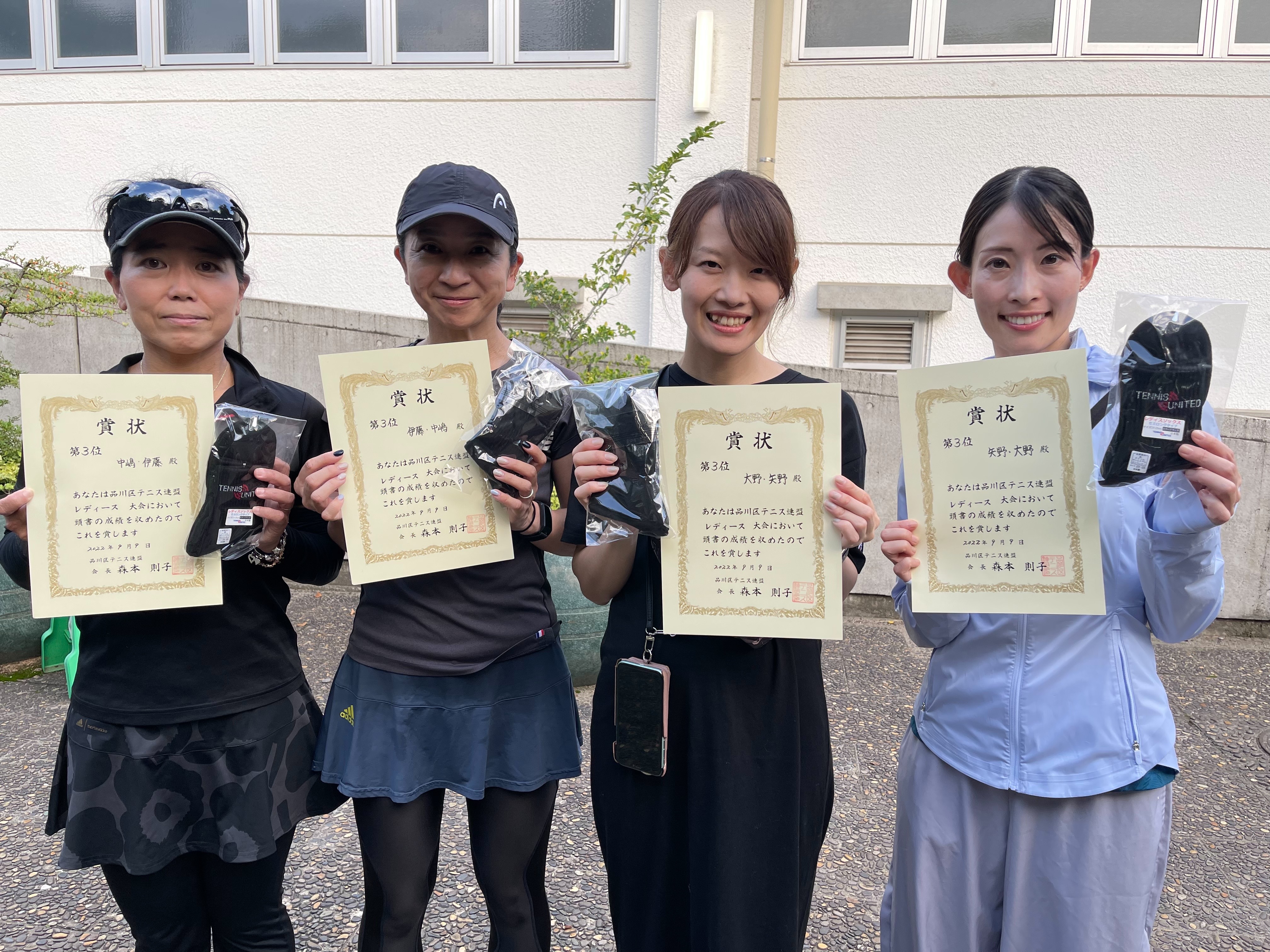2022/09/09 レディーステニス大会 上位入賞者写真